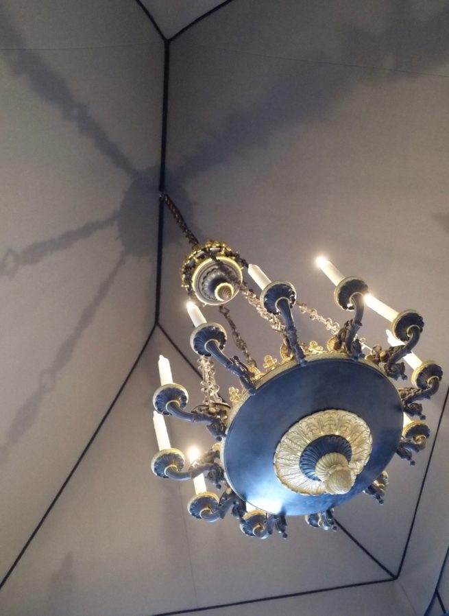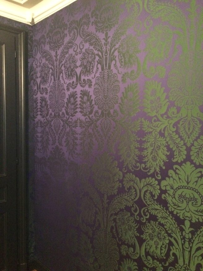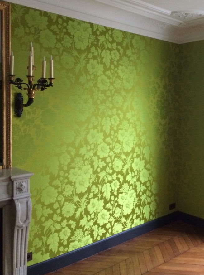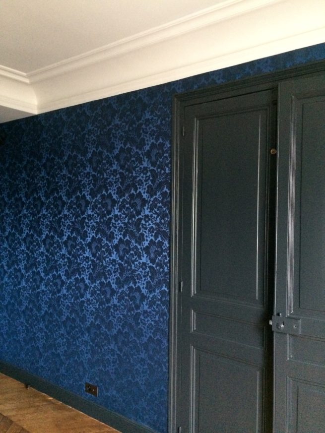 tenture murale avec deux velours et incrustation de baguettes dorées