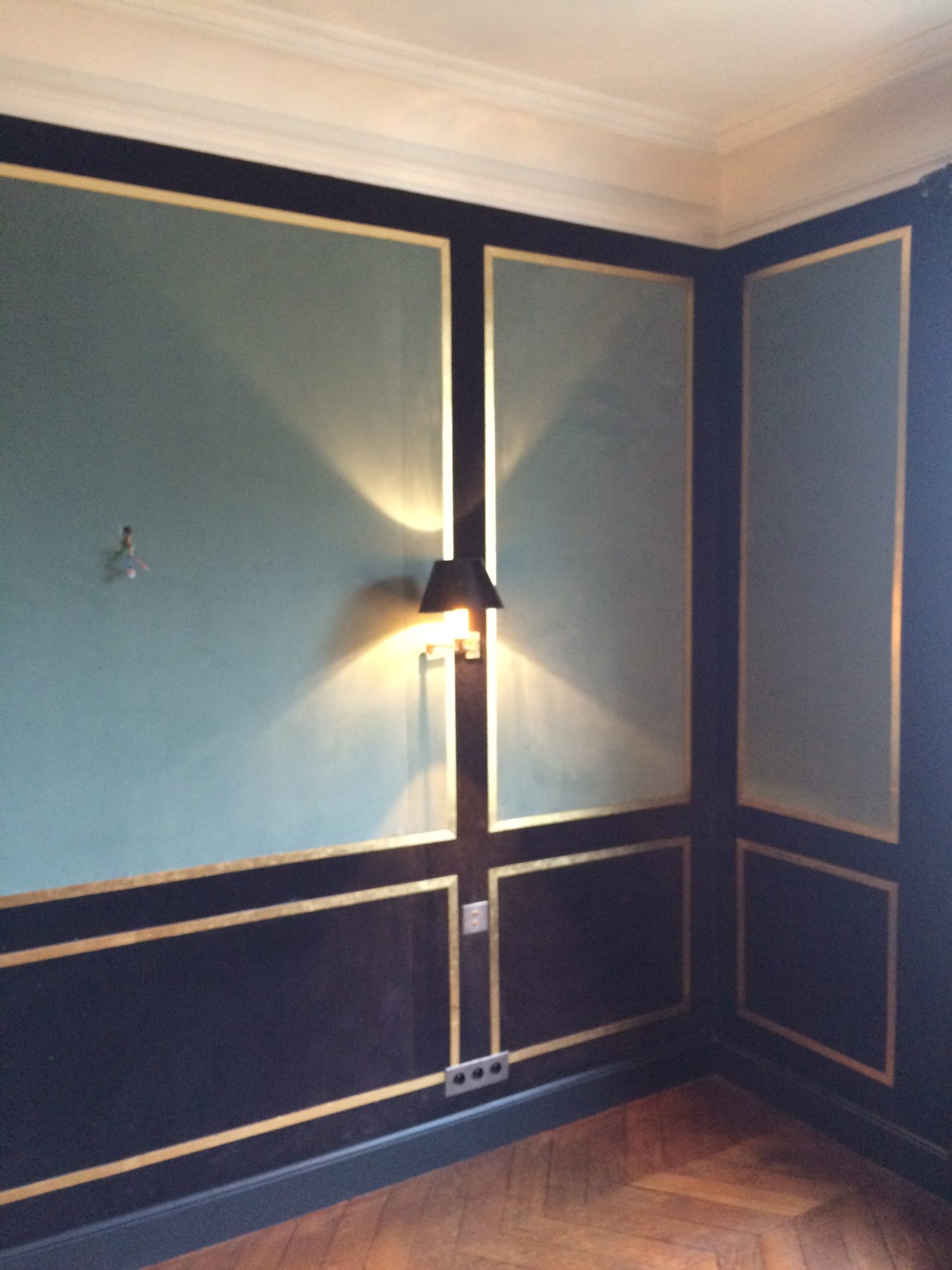 tenture murale avec deux velours et incrustation de baguettes dorées